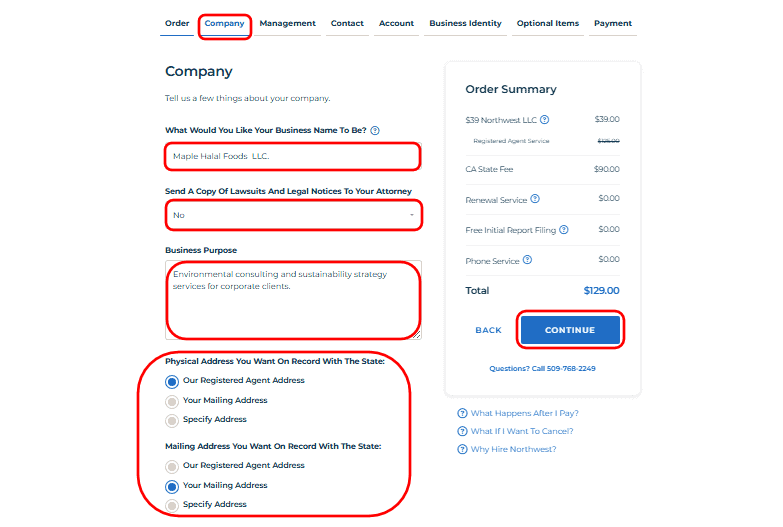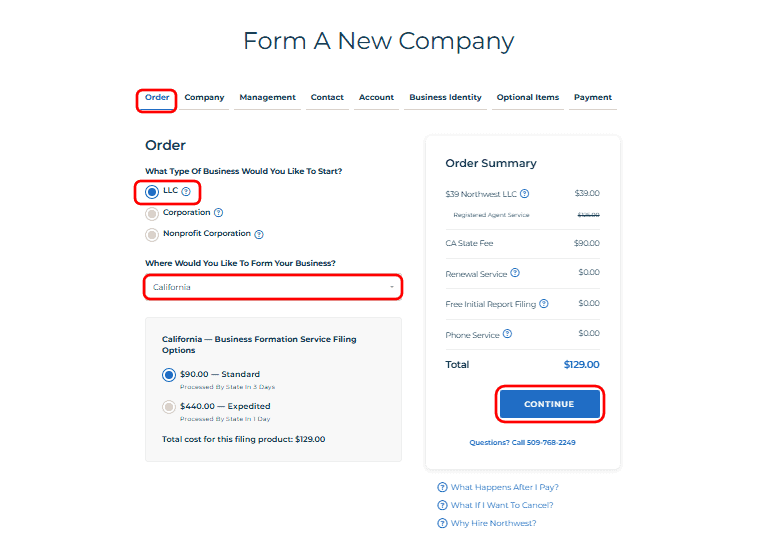 Note: Here we select California as an example. If you choose a different state, replace California with your selected state. - Then click Continue to move forward with your registration.