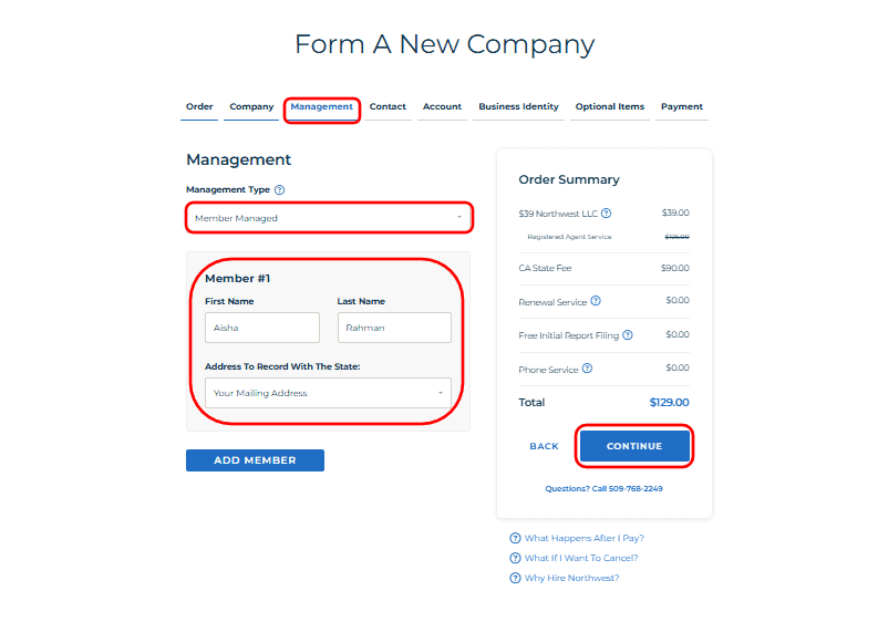 - Select the “Member-Managed” if you want the owners to manage the business directly. Alternatively, choose Manager-Managed if your company will have appointed managers.