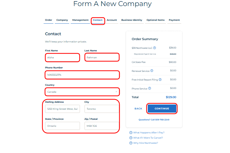 - Provide your contact details, including phone number, country, mailing address, city, and ZIP code.