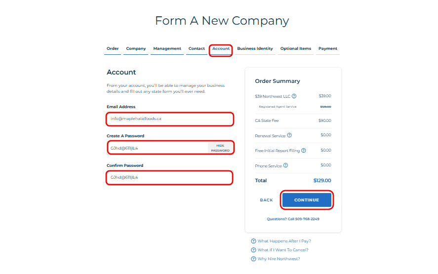 - Create an account using your email address and create a strong password to manage your LLC details.