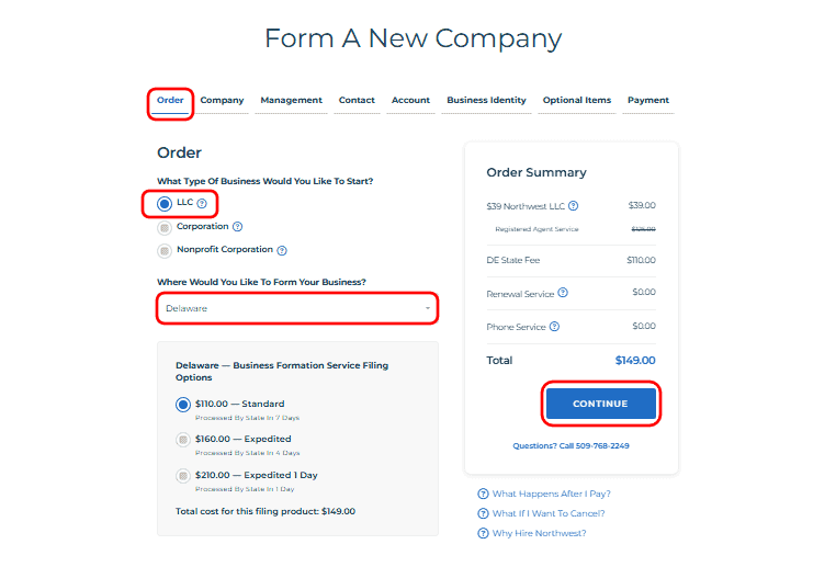 - The first step in forming your Delaware LLC is to visit the Order Page.