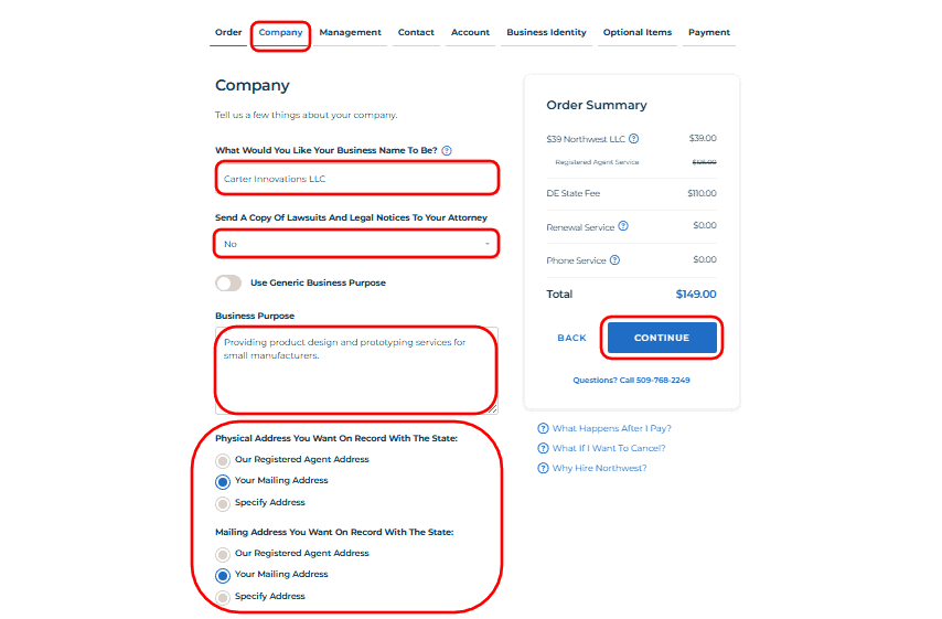 - This information is necessary for communication with your registered agent and for receiving updates about your Delaware LLC registration Process.