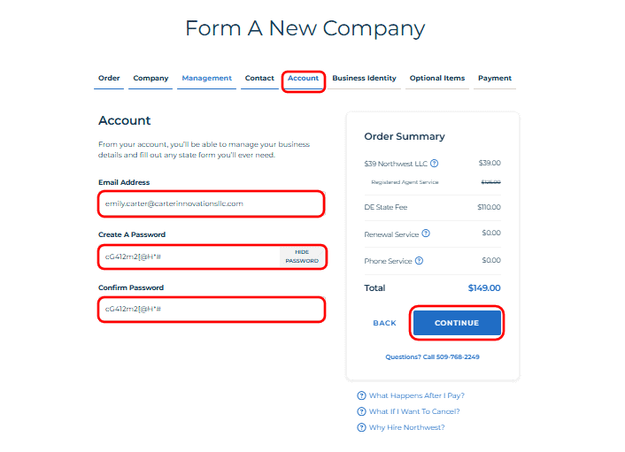 - Now, create your LLC account by entering your email address and setting a Secure Password.