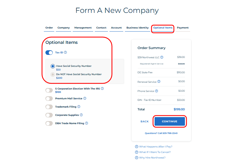 - This section includes useful extra services like the EIN (Employer Identification Number) — also known as your federal Tax ID.