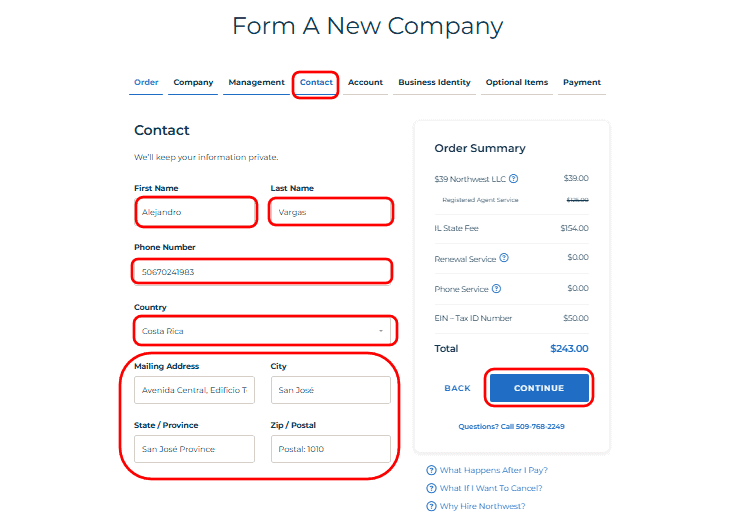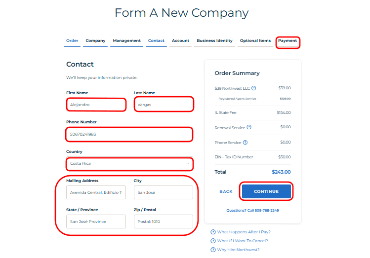 • This is the final checkout stage before your LLC is officially filed. Enter the Payment Information here.